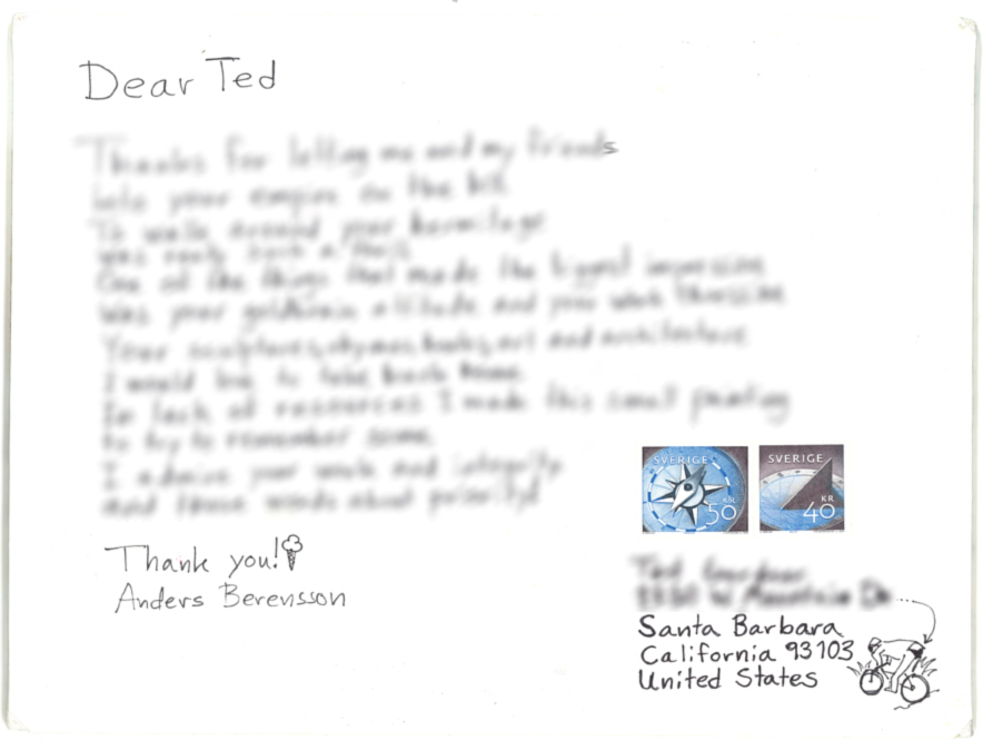 On a business trip last week to Santa Barbara and Salt Lake City I took the chance to meet with one of my favorite persons on the US- West-Coast, Ted Gardener. While going through his book house project on The Hermitage Santa Barbara 20 I discovered that a postcard I painted and sent to Ted is now part of the Hermitage art Collection. I’m of course uttermost proud that my simple painting is now part of one of my favorite places in the US!